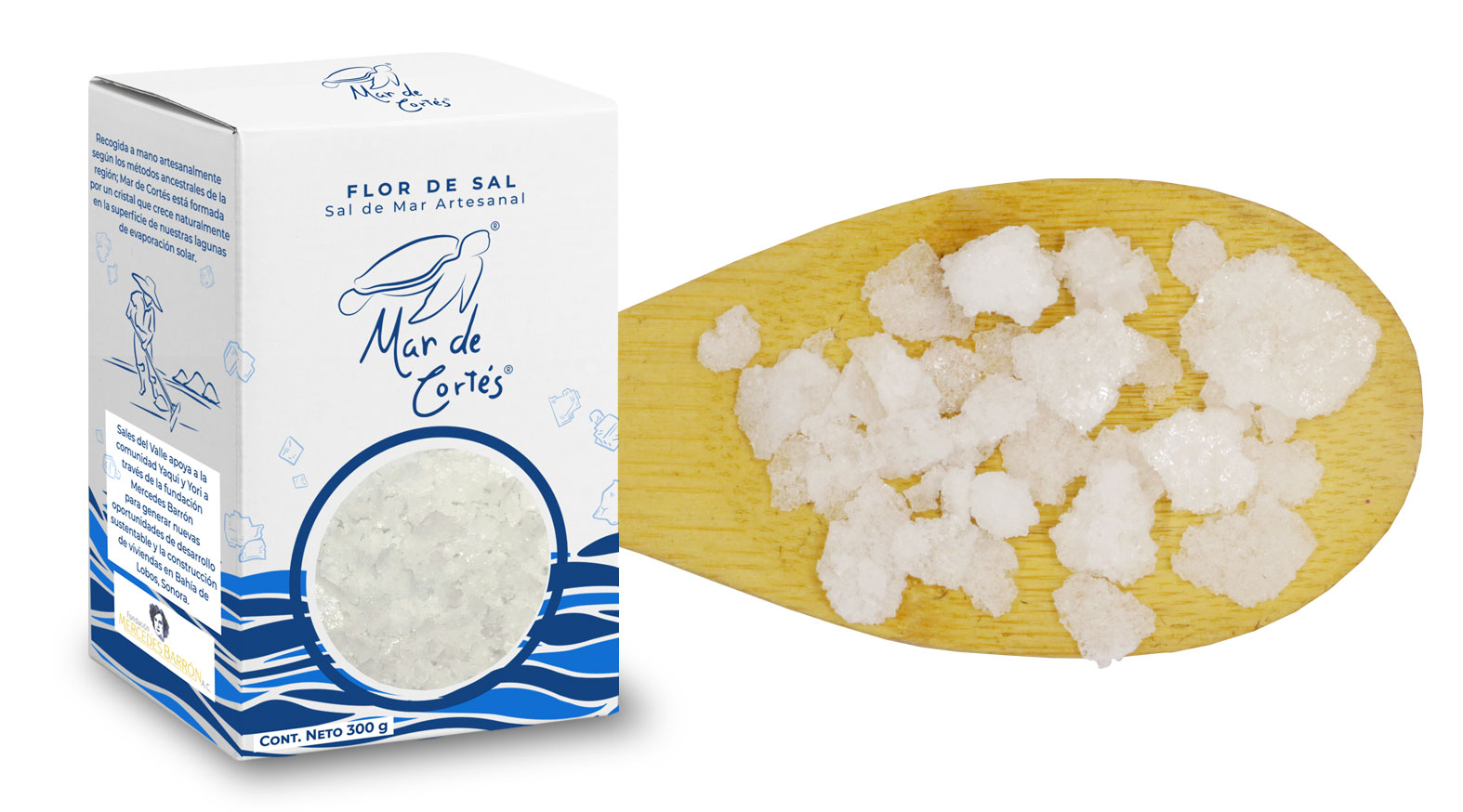 Flor de Sal Mar de Cortés es cosechada artesanalmente en nuestras lagunas de evaporación solar según los métodos ancestrales de la región. Logramos retener los minerales fundamentales para la salud que están presentes en el agua de mar, tales como Calcio y Magnesio, en un cristal blando que se deshace con tus dedos.